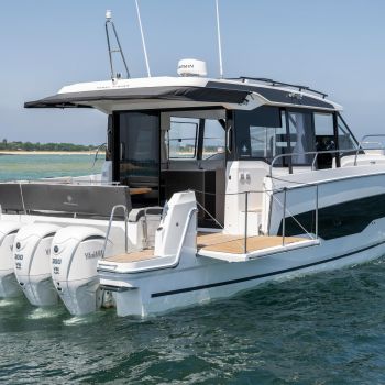 Die Jeanneau Merry Fisher 1095 Coupé hat die Herausforderung einer Außenbordmotorisierung für ein Boot mit mehr als 10 Meter gemeistert. Leistung und Zuverlässigkeit vereinen sich mit einem stabilen Handling, einer hervorragenden Seegängigkeit und einer mühelosen Manövrierfähigkeit. Spitzengeschwindigkeiten von 37 Knoten für Liebhaber der Dynamik und eine gute Manövrierfähigkeit auch bei geringer Geschwindigkeit zählen zu den Vorzügen.