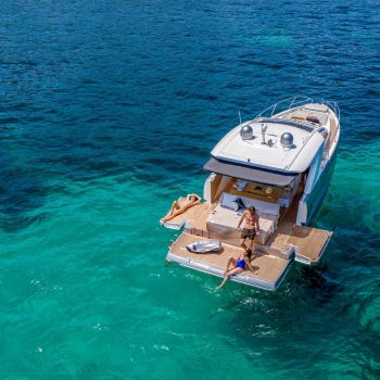 Die DB/43 IB stehen für die Freuden des Meeres und der Sonne, sie kultivieren Ästhetik und Geselligkeit. Außergewöhnlicher Komfort und hochwertige Ausstattung für eine Nacht an Bord mit einem befreundeten Paar: Die Eignerkabine ist ebenso geräumig und hell wie die Gästekabine, die durchgehend ist und über ein Doppelbett sowie ein drittes Zusatzbett verfügt. Beach Club-Atmosphäre an Deck – unter der Sonne oder unter dem Sternenhimmel –, damit Sie und Ihre Gäste unvergessliche Erinnerungen in traumhaften Landschaften schaffen können.